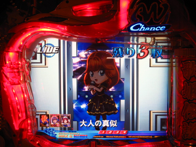 ええ、パケホーダイじゃないですけど… でも、めんどくさがることにかけては かなりの腕前なわたくしです。 1年後の今日もきっとドコモショップには行っておらず パケホーダイにしてないことも明確だったので さくっとDLいたしました!わははははは! おとといぐらいにゲットしてから、C姫さまモードで遊んでます♪ いや~~~楽しいですね! 擬似連の歌姫伝説出目がおもいっきり無視なのも、 保留4でプレート2枚落ちてもおもいっきり時短回転なのもステキです! 同じく保留4でアングルモニターに行って砂嵐だったのも (´゜艸゜)ププッ とにかく群がみたくて回してましたが、 ようやくゲットできました! しかも、A菜ちゃん単群!ぉお!!(゚ロ゚屮)屮 あれって、うひょひょすべりはないんですよね? あと、プレート3枚合体のSU4とかもあるんでしょうか? いまだに2枚合体したことすらないです。 ええ、おとといDLしたばっかりですが。(´゚艸゚)∴ブッ ってことで、本日の家LIVEです! 今日はなんとなんと… ↓↓↓ 半ちゃんが大暴走!(((( ;゜Д゜))) ↓↓↓ 2007.10.17 Wed 23:37:17