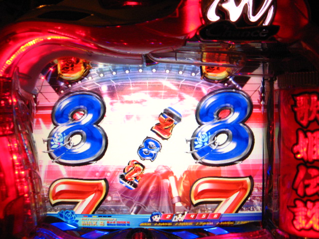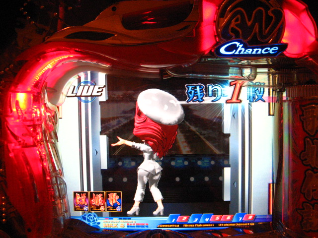 和解はかなり成立したかとおもわれますが、 なんせプレミアどころかレア演出も出ません… モニターアニメぐらいでいいので、今日こそはぜひっっっ!! ってことで、電源ON! するとなんと1回転目にっ!!!!!! 2007.08.15 Wed 10:14:26