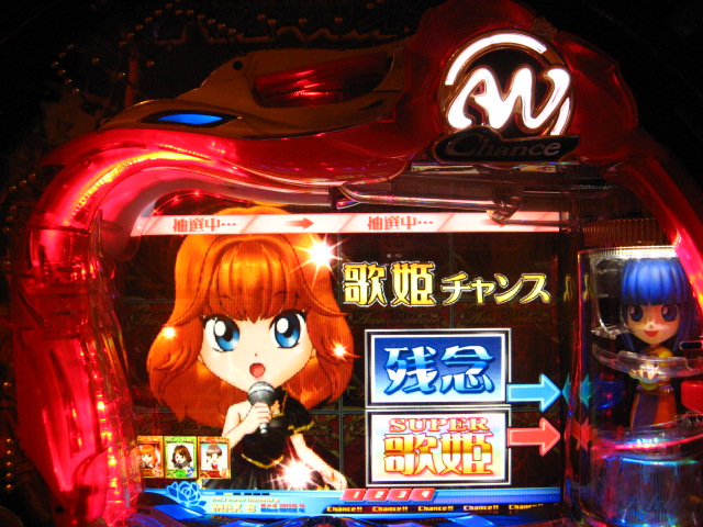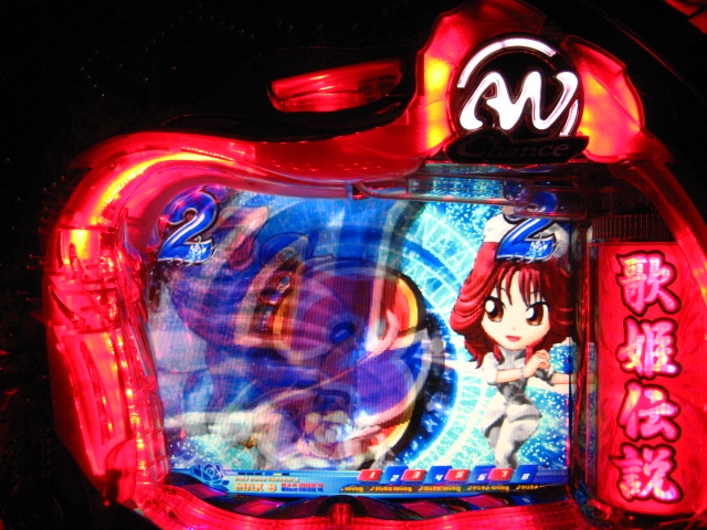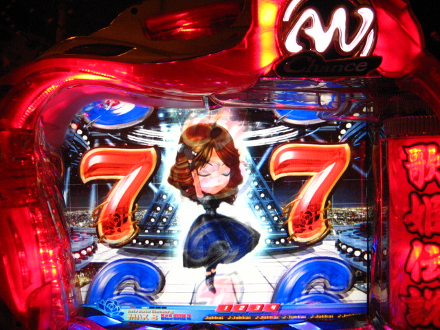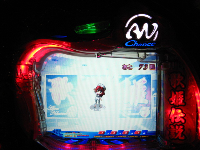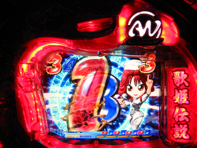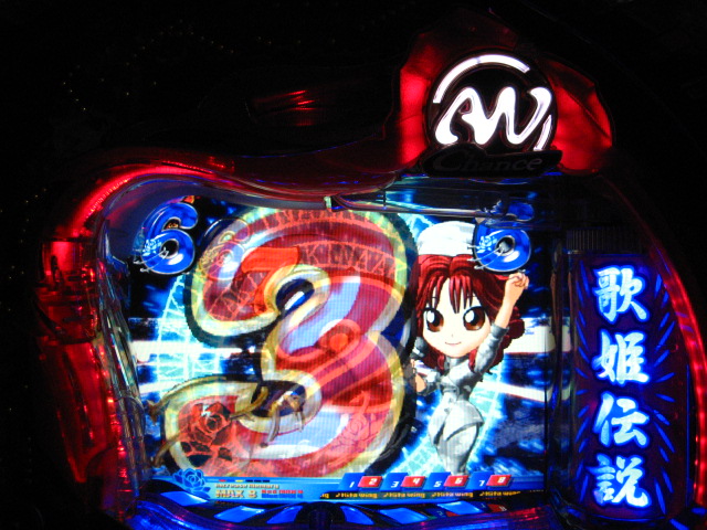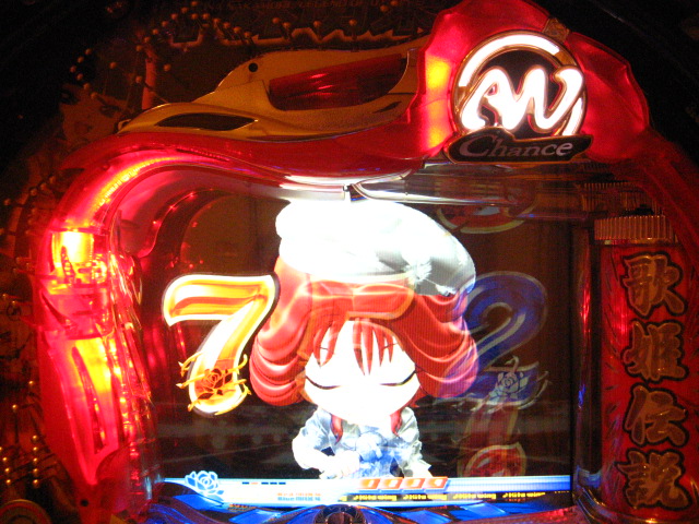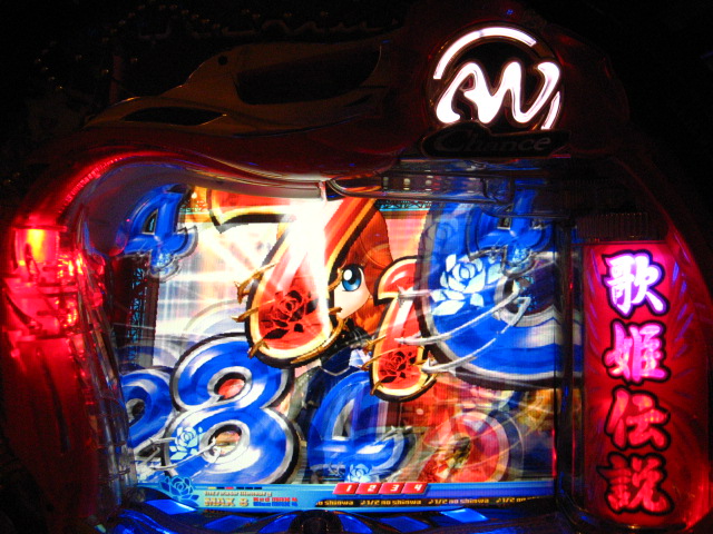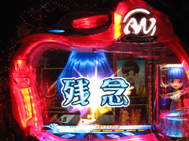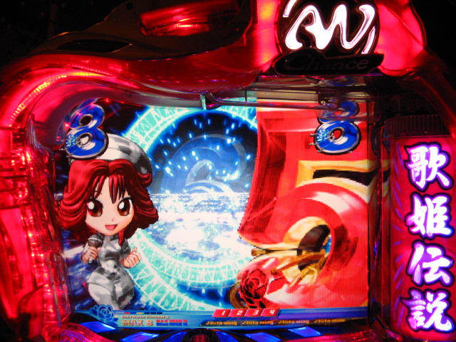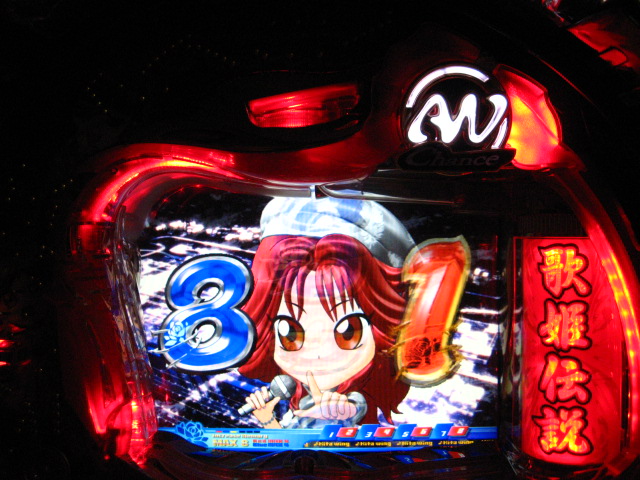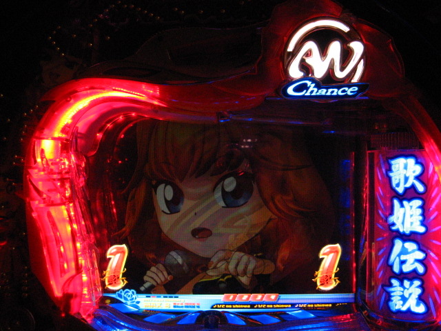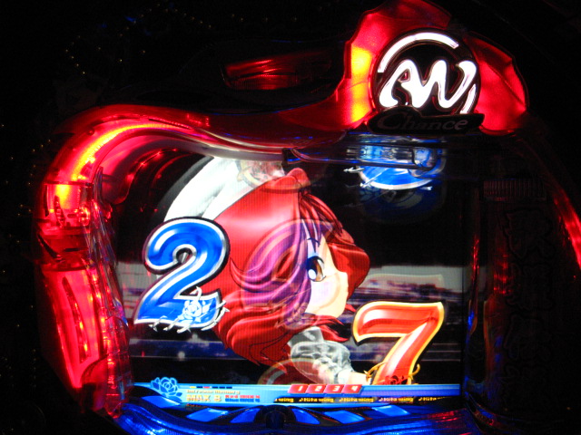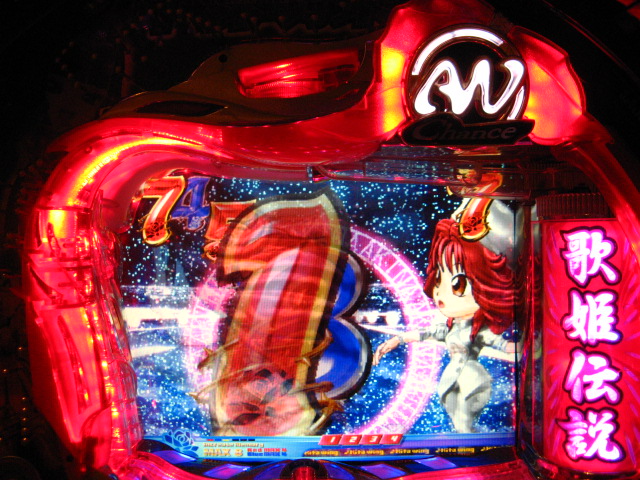 「今月のホールLIVEは終了」と書いたおぼえがありますが 今日も行っちゃいましたっ! というか、用事があったのででかけたら、 なんとなんとなんと、パチンコ屋さんがあるではないですかっ!!! ・・・ええ、知ってましたけども。 ってことで、本日0当たり 0回転の2番目で打ち出し! ・・・回るような、回らないような・・・ っていうか、3Kほど入れてもカメレオンすら来ませんっ! ふと隣の角台を見ると、当たりは0ですが すでに230回ぐらい回ってます。 「こ、こっちか・・・?」 2007.07.26 Thu 23:54:42