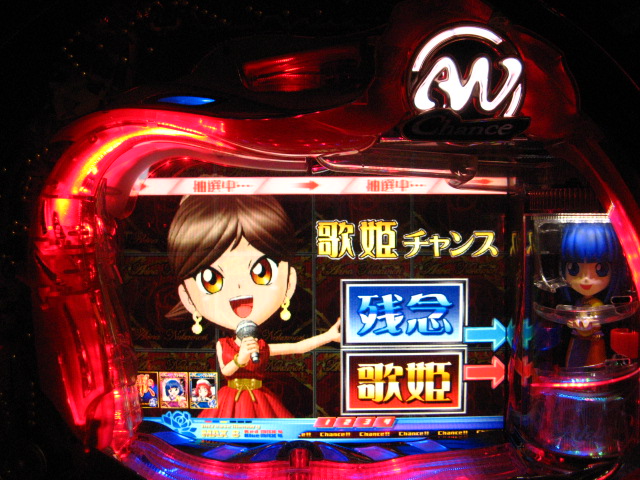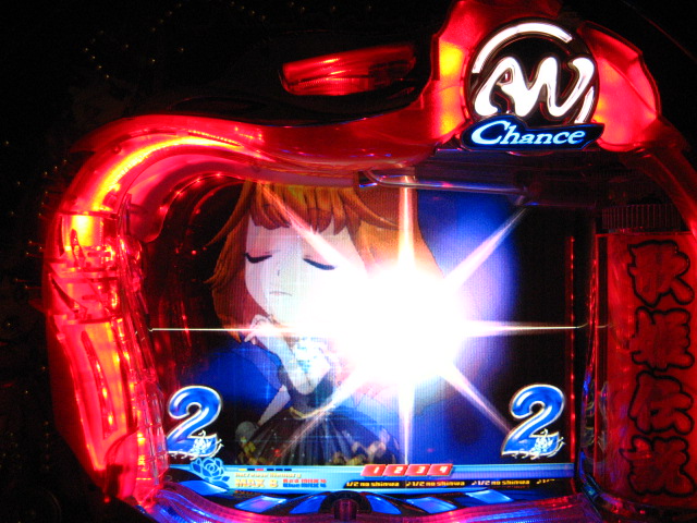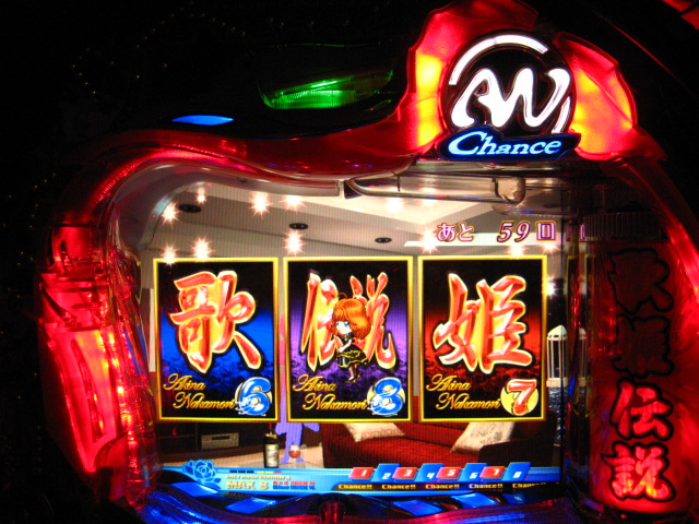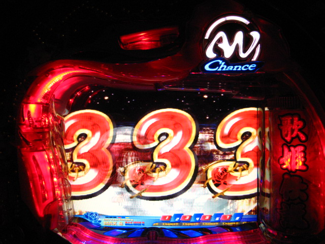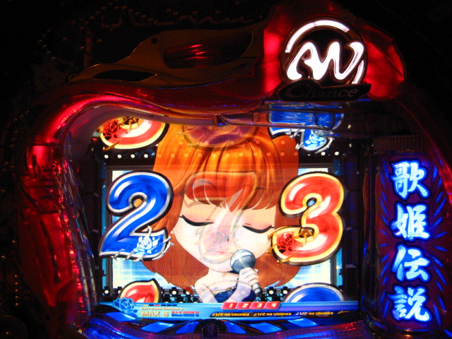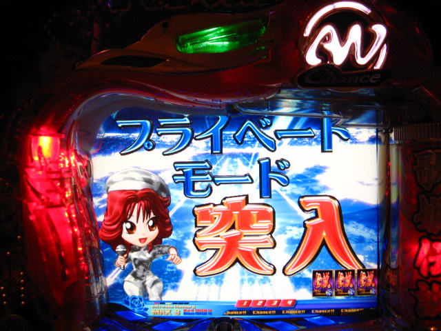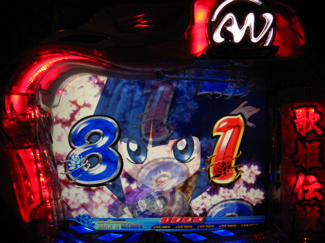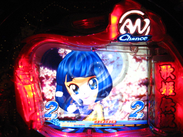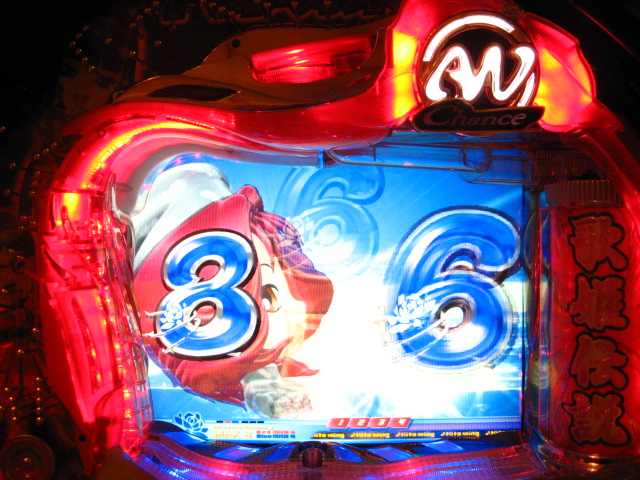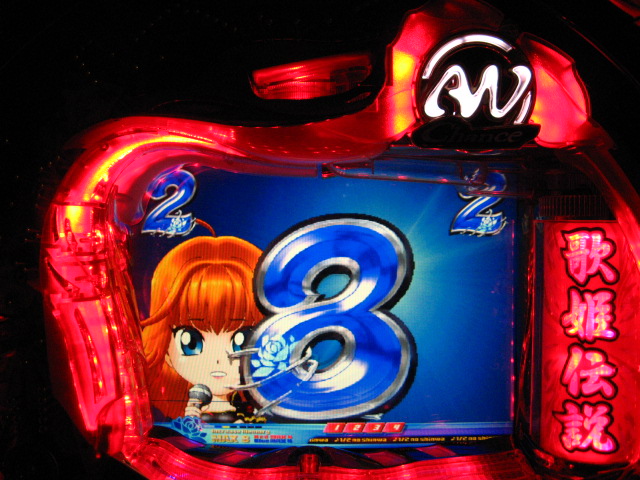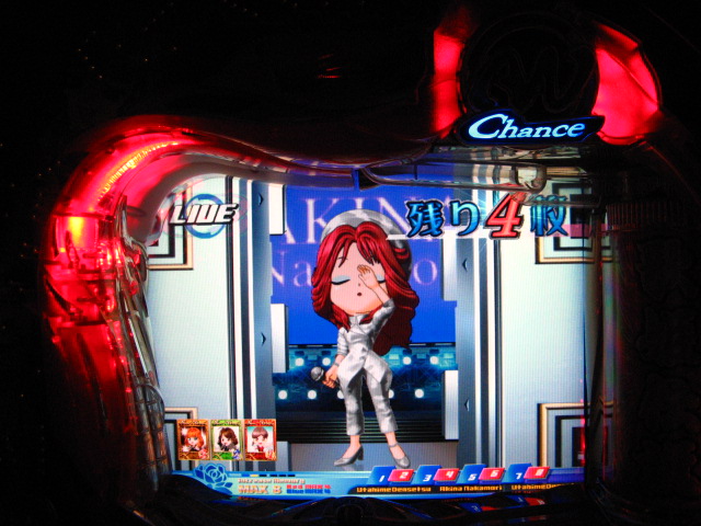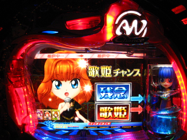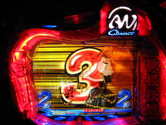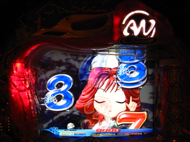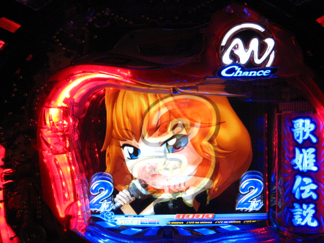 「今月のホールLIVEは終了」と書いたおぼえがありますが 今日も行っちゃいましたっ! というか、用事があったのででかけたら、 なんとなんとなんと、パチンコ屋さんがあるではないですかっ!!! ・・・ええ、知ってましたけども。 ってことで、本日0当たり 0回転の2番目で打ち出し! ・・・回るような、回らないような・・・ っていうか、3Kほど入れてもカメレオンすら来ませんっ! ふと隣の角台を見ると、当たりは0ですが すでに230回ぐらい回ってます。 「こ、こっちか・・・?」 2007.07.26 Thu 23:54:42