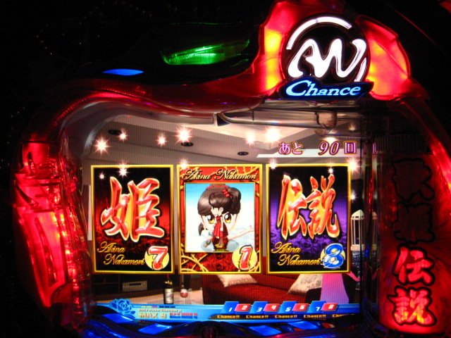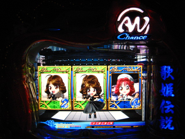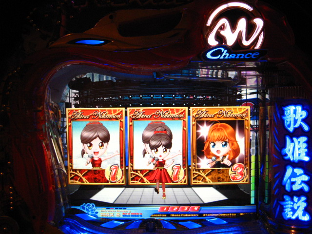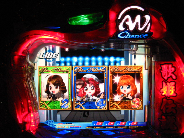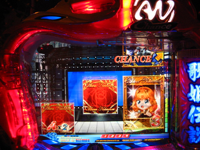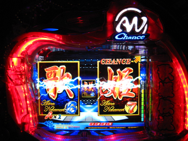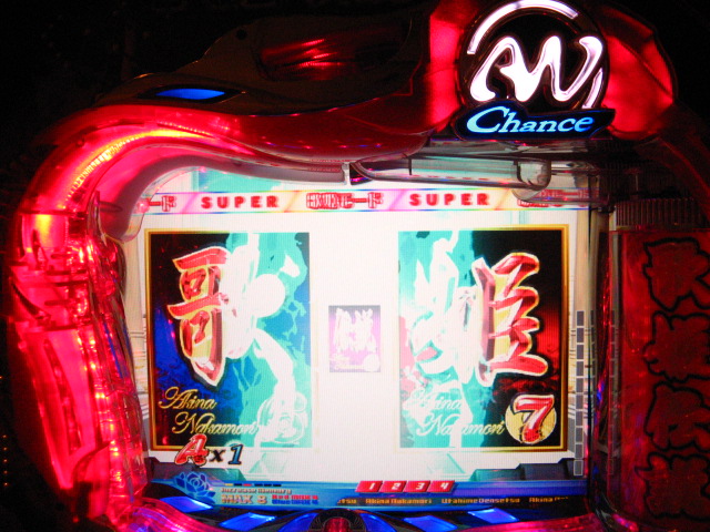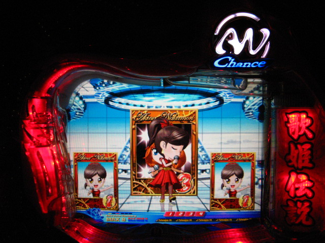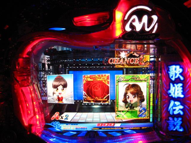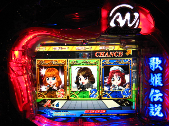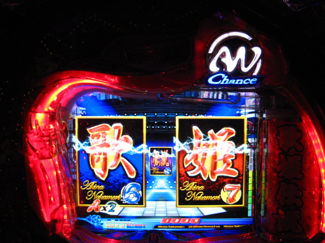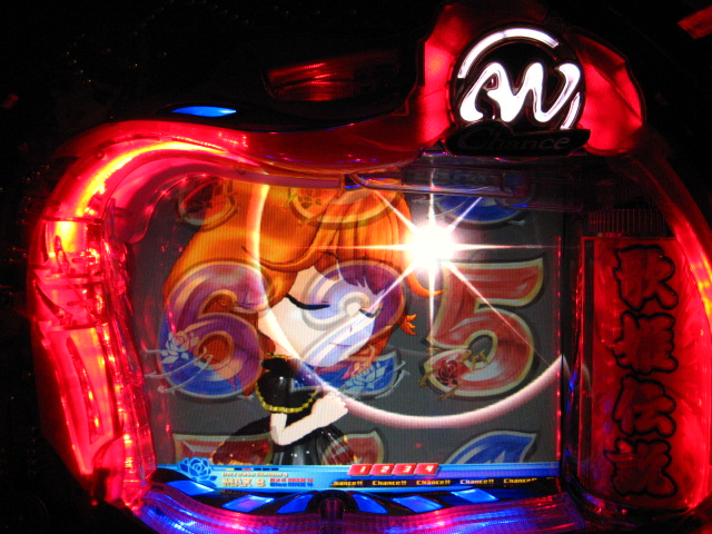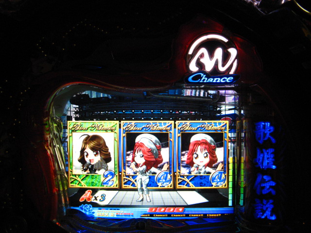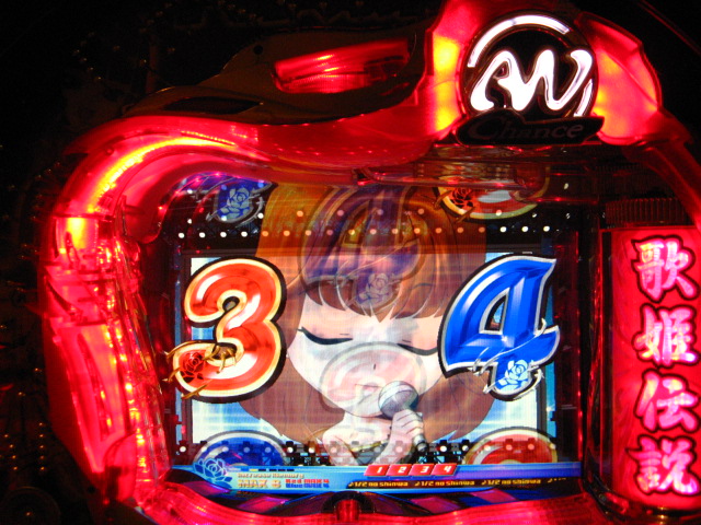 「今月のホールLIVEは終了」と書いたおぼえがありますが 今日も行っちゃいましたっ! というか、用事があったのででかけたら、 なんとなんとなんと、パチンコ屋さんがあるではないですかっ!!! ・・・ええ、知ってましたけども。 ってことで、本日0当たり 0回転の2番目で打ち出し! ・・・回るような、回らないような・・・ っていうか、3Kほど入れてもカメレオンすら来ませんっ! ふと隣の角台を見ると、当たりは0ですが すでに230回ぐらい回ってます。 「こ、こっちか・・・?」 2007.07.26 Thu 23:54:42