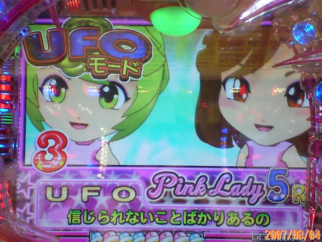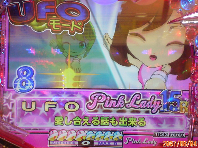 波乱万丈というか、山あり谷ありというか、 ものっすごい疲れましたっ 初当たりは、なんと1Kだったんです! 客船で、遅れPHF発生! 3回続くも、プッシュボタン指示出ず。 まあ打ち始めですしね、当たるワケないです・・・ とおもってたら、透明人間実写カットイン。 う~ん・・・ 2のリーチで、前半終了時の数字は1・1・2。 これ、すんごいダメダメパターンなんですよね・・ たいてい後半行きますが、当たらない・・・ 2007.08.04 Sat 21:34:36