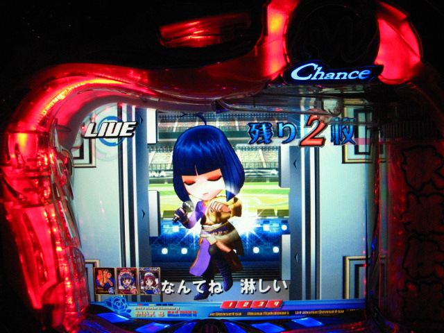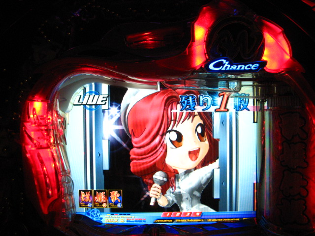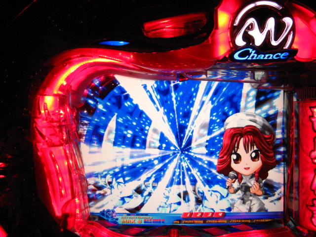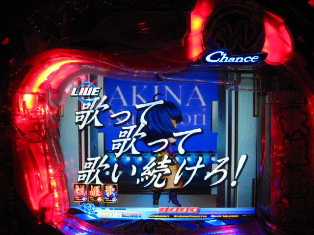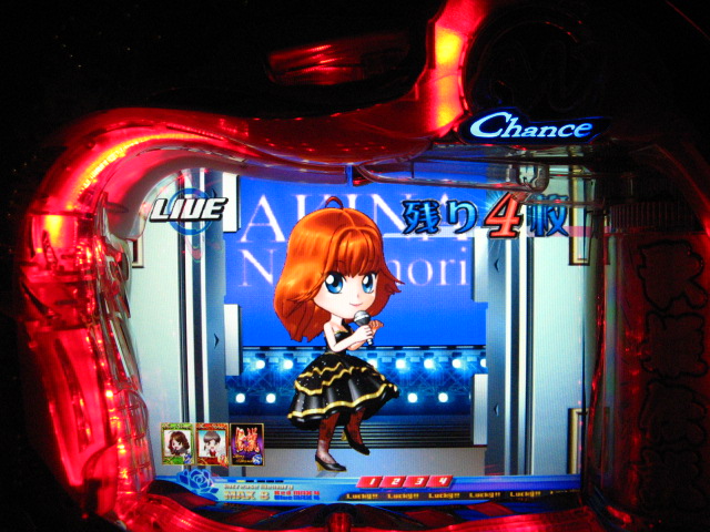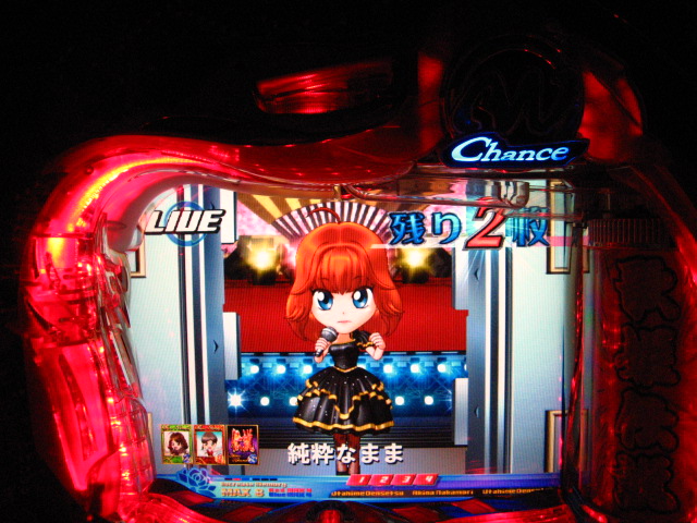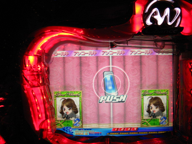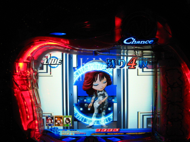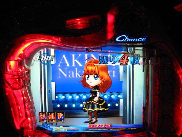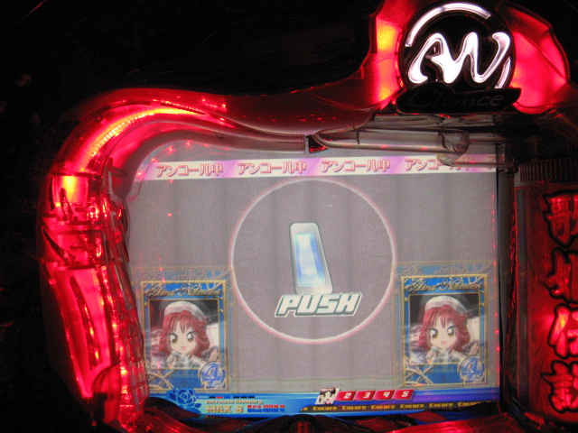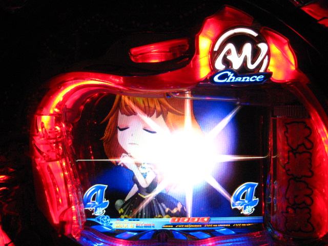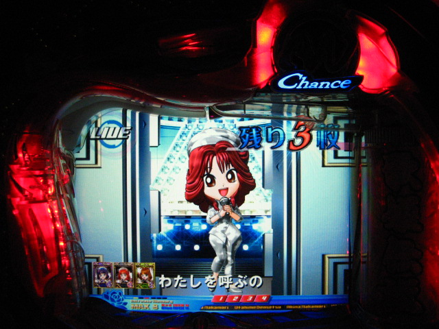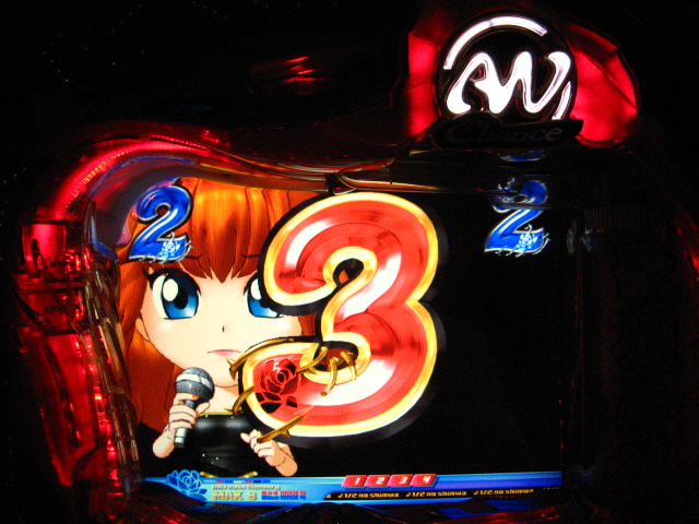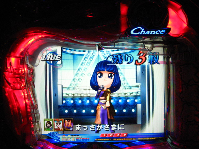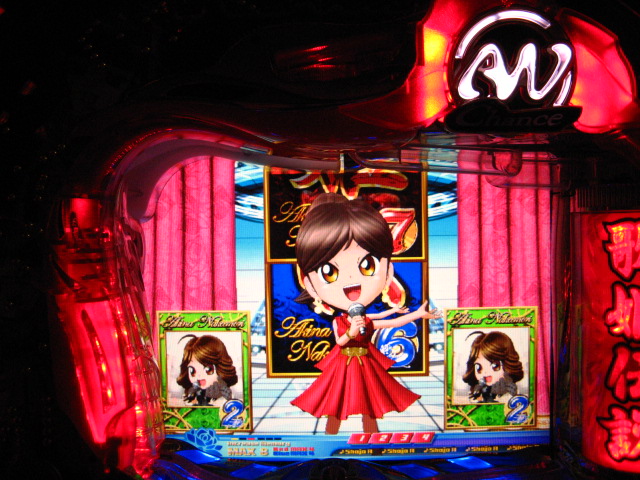 桃気づいている完走に怒り心頭のちび菜ちゃんたちでしたが ようやく当たりをもたらしてくれるように。 数々のじれったい攻撃を炸裂させつつ、2R確変ゲットのあと シルエット菜さん → アンコA菜ちゃん当たりという ものっすごい普通っぽいような、2R中ならではのような当たりが! そして、14R明菜チャンスで、半ちゃん3枚同カードを しつこく狙い続ける完走! はたして今回ついにゲットできたのか!? 2007.07.03 Tue 23:04:46