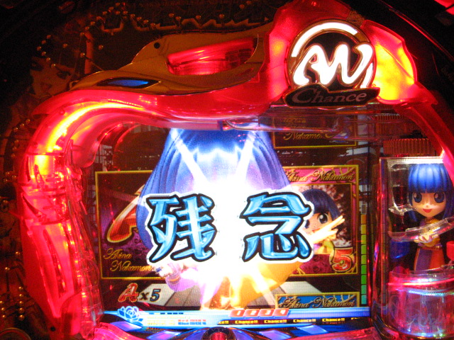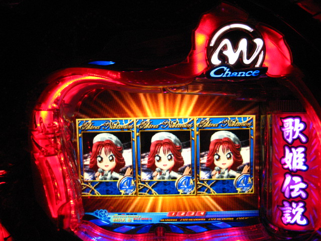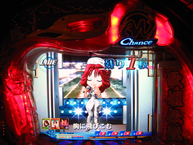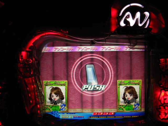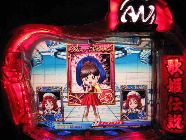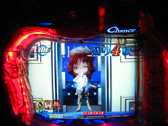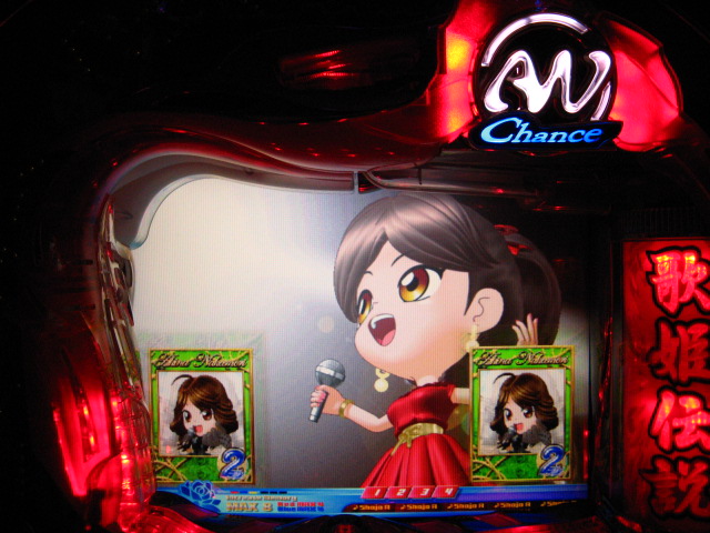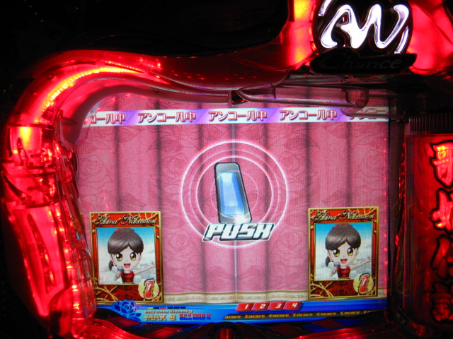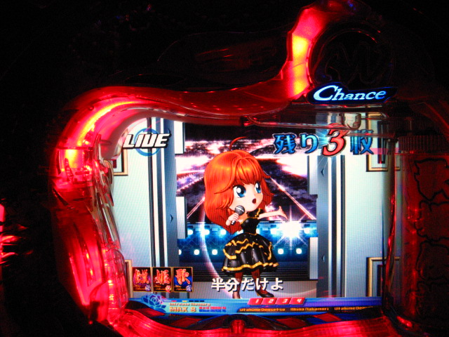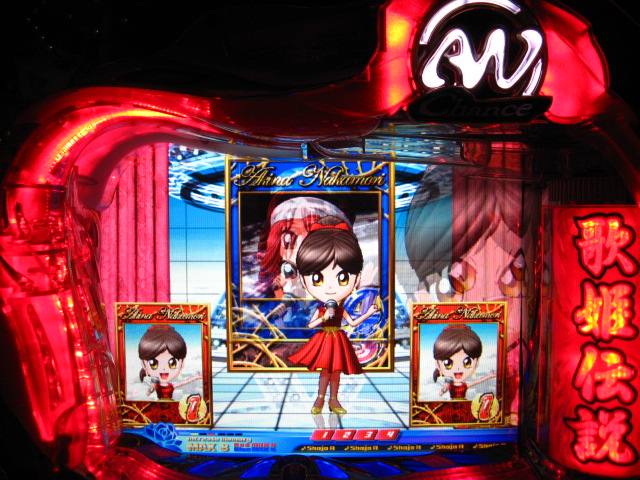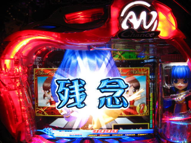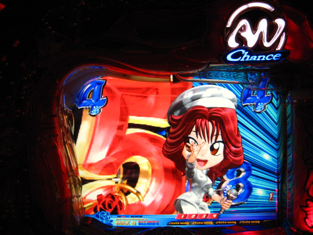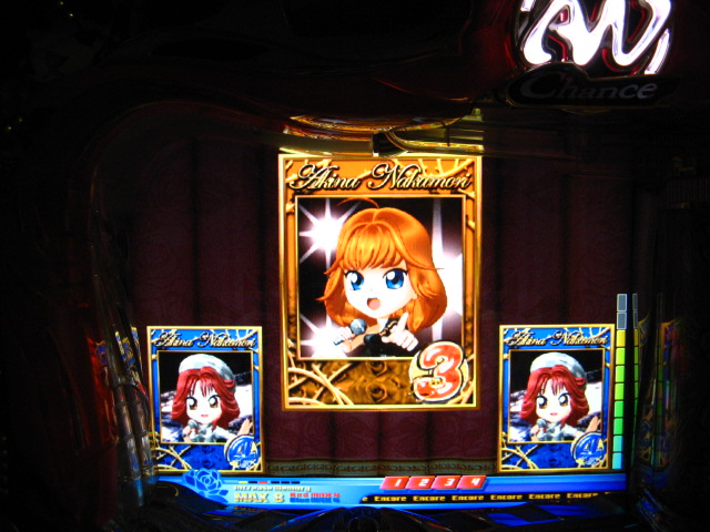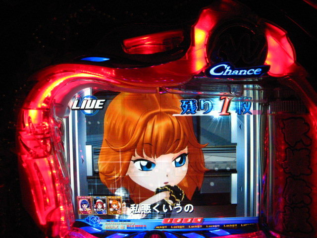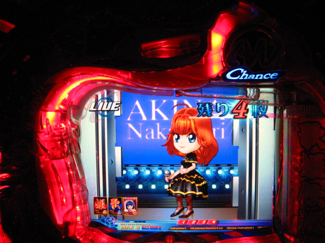 桃気づいている完走に怒り心頭のちび菜ちゃんたちでしたが ようやく当たりをもたらしてくれるように。 数々のじれったい攻撃を炸裂させつつ、2R確変ゲットのあと シルエット菜さん → アンコA菜ちゃん当たりという ものっすごい普通っぽいような、2R中ならではのような当たりが! そして、14R明菜チャンスで、半ちゃん3枚同カードを しつこく狙い続ける完走! はたして今回ついにゲットできたのか!? 2007.07.03 Tue 23:04:46