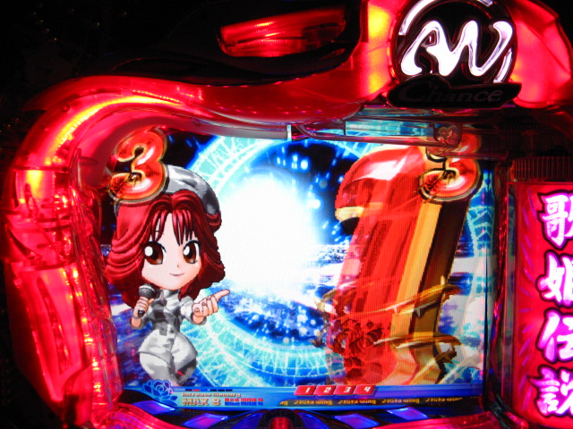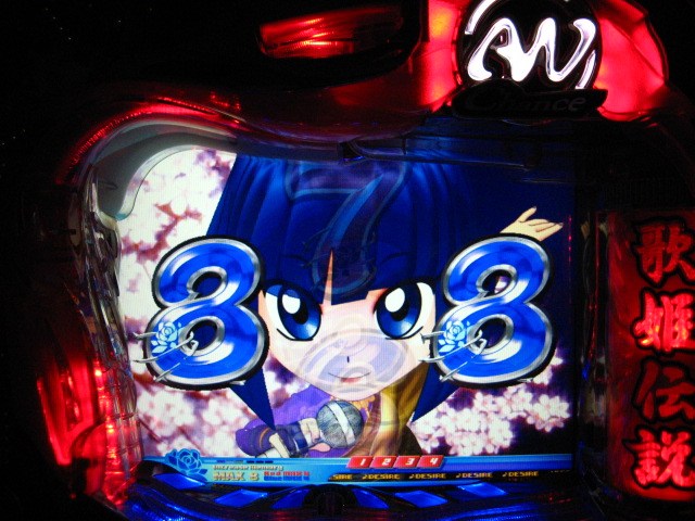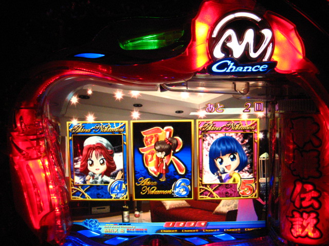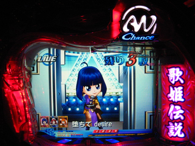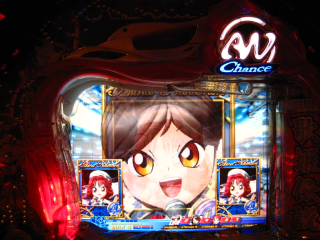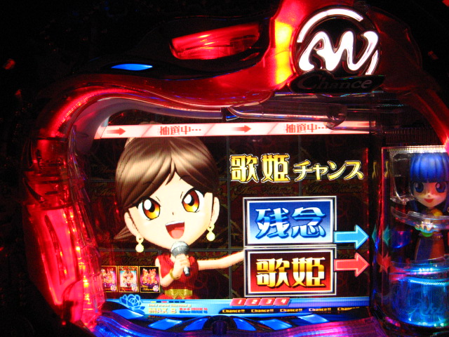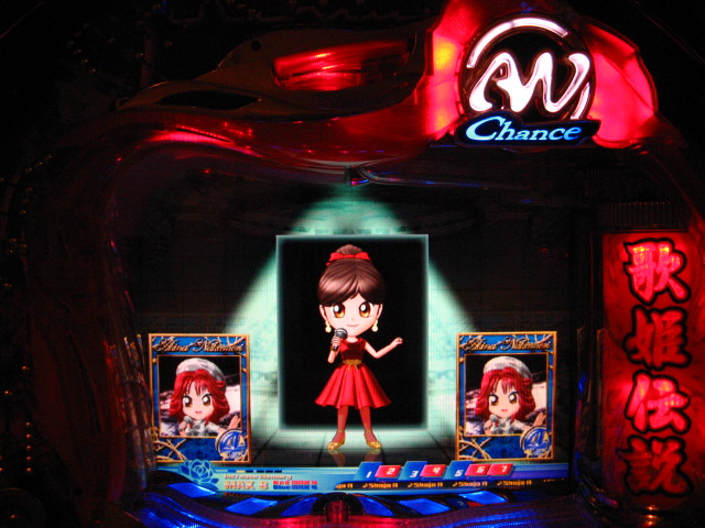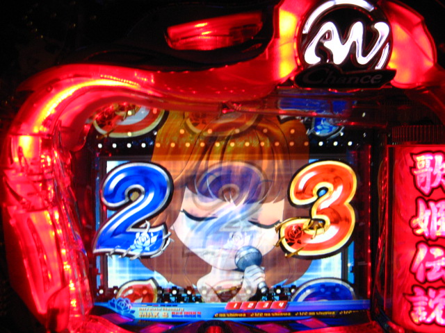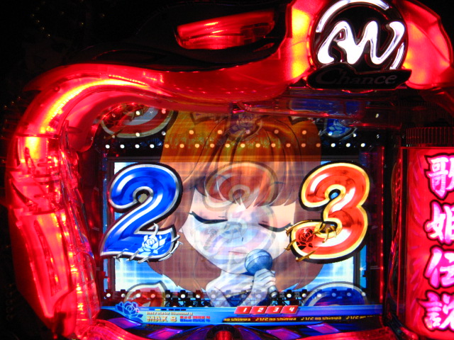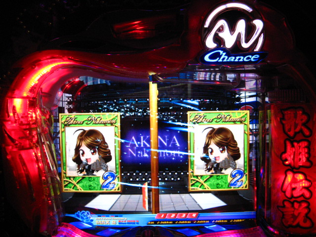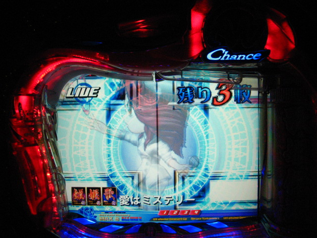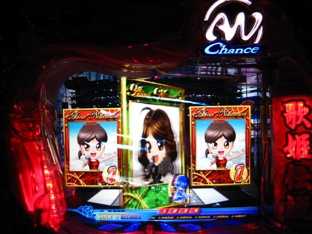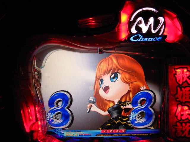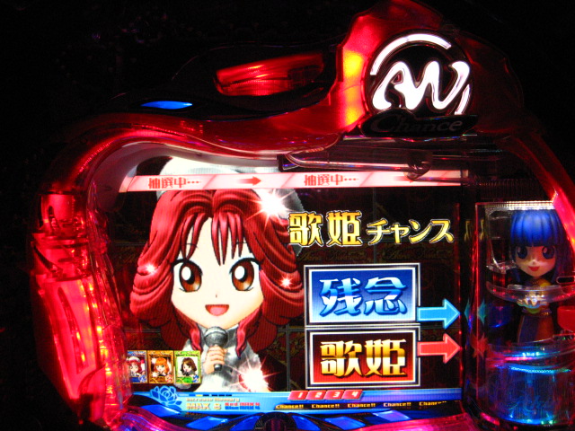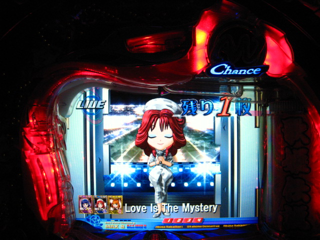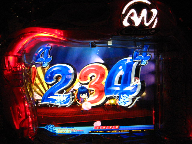 桃気づいている完走に怒り心頭のちび菜ちゃんたちでしたが ようやく当たりをもたらしてくれるように。 数々のじれったい攻撃を炸裂させつつ、2R確変ゲットのあと シルエット菜さん → アンコA菜ちゃん当たりという ものっすごい普通っぽいような、2R中ならではのような当たりが! そして、14R明菜チャンスで、半ちゃん3枚同カードを しつこく狙い続ける完走! はたして今回ついにゲットできたのか!? 2007.07.03 Tue 23:04:46