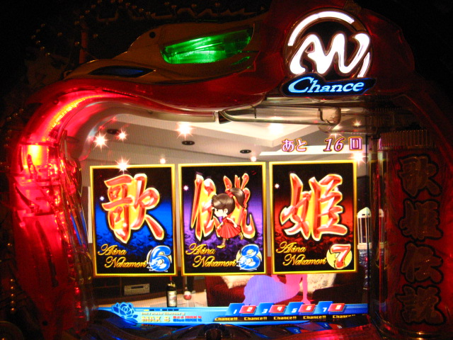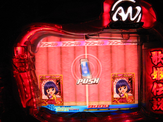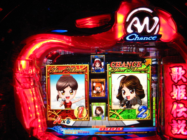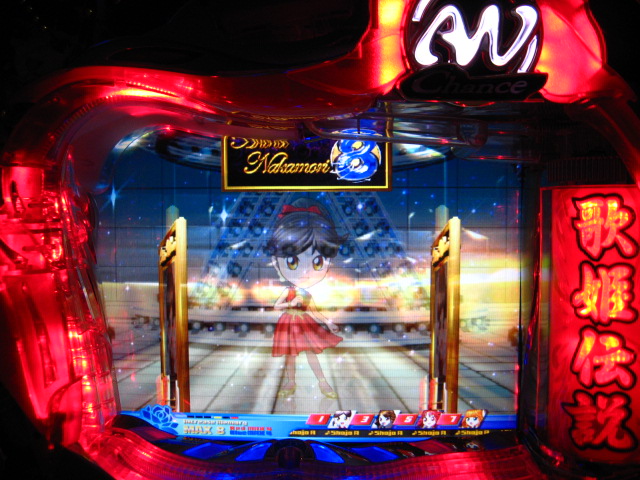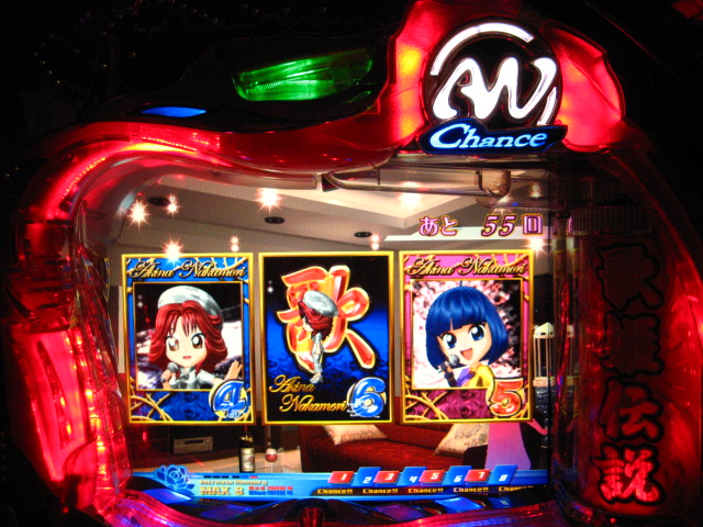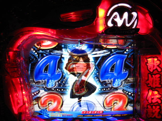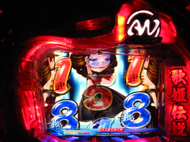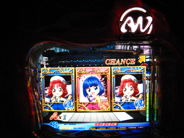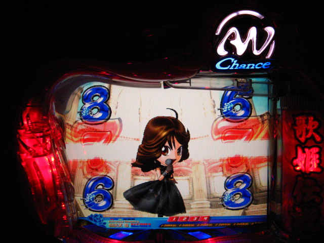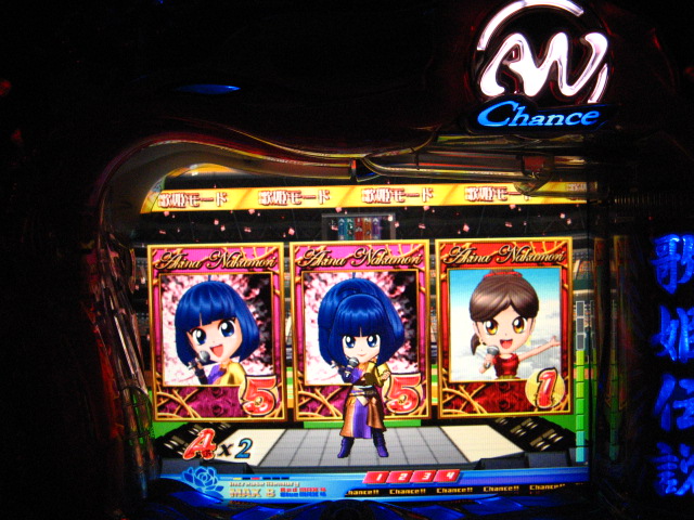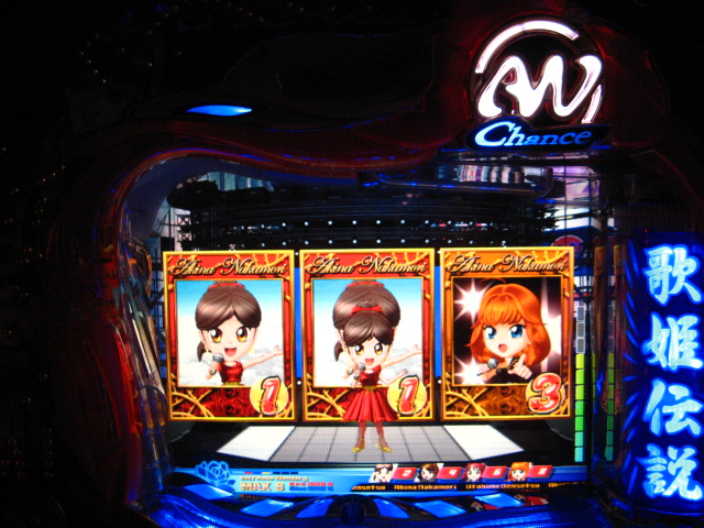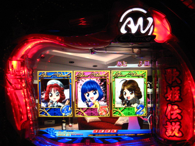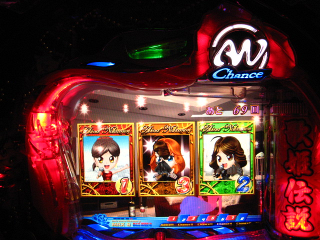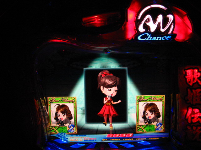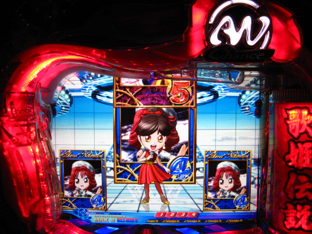 桃気づいている完走に怒り心頭のちび菜ちゃんたちでしたが ようやく当たりをもたらしてくれるように。 数々のじれったい攻撃を炸裂させつつ、2R確変ゲットのあと シルエット菜さん → アンコA菜ちゃん当たりという ものっすごい普通っぽいような、2R中ならではのような当たりが! そして、14R明菜チャンスで、半ちゃん3枚同カードを しつこく狙い続ける完走! はたして今回ついにゲットできたのか!? 2007.07.03 Tue 23:04:46