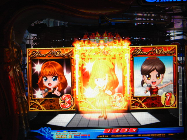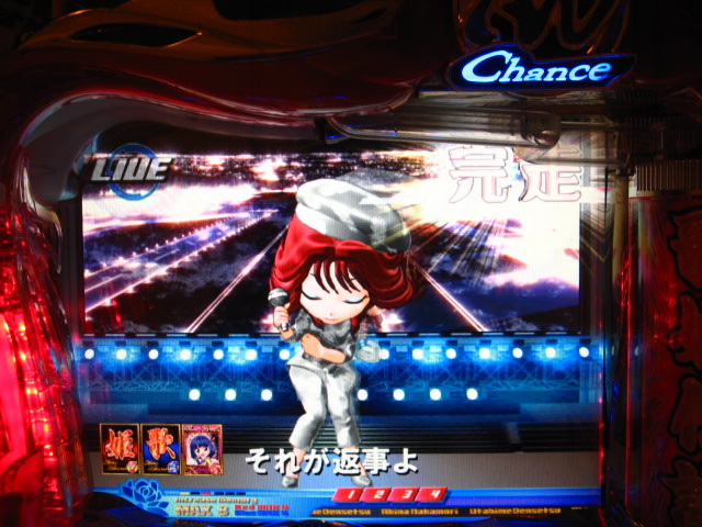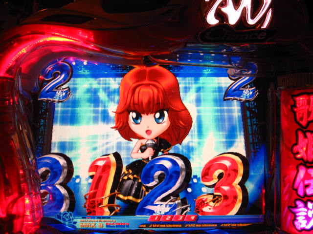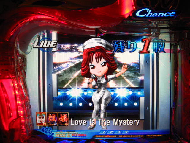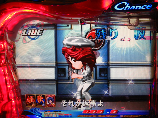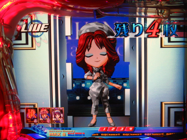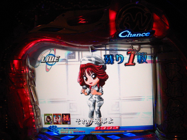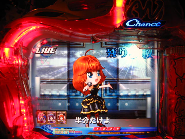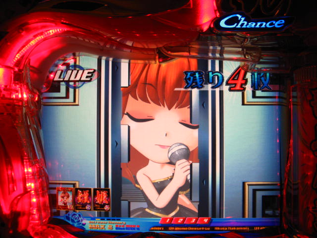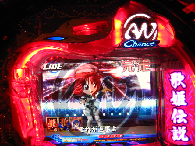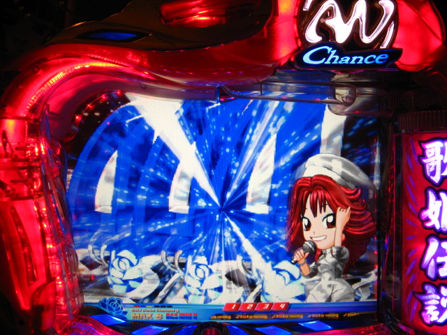 さっそくご相談なんですが・・・ スーパー歌姫モードの時なんですが (もちろんガセです ( ゜з゜):;*.':;) だいぶ前に、通常回転してるとき(カードが透けてる時)に、 カードをつきぬけて(?)ステージライトの丸い光が 通り抜けていくと、リーチ演出だ! ということに気づいたんです。 家パチだとつねに保留が満なので、 変動時間が長ければ ”なんか来る!” とすぐわかるわけですが・・・ まあ、回転が始まると同時に丸い光が左から右へ流れて行くので ”おっ!?” と、イチ早くわかるぐらいのお得感だったんですね。 ちょうどLMの時に、歌が始まる場合はうしろのモニターに ANが流れていくのと同じ感覚です。 ところがっ! CXを打っていたときにスーパー歌姫モードになり ナニゲに画面を見てたら・・・ しょっちゅう丸い光が流れていくんです。 でも、リーチにはならず・・・ その時は、「AXだけ!?そんなわけないよなあ~」とおもいつつ、 家パチ時に見間違えたのかなあ~と思ってました。 で、こないだホールAXを打った時も、スーパー歌姫モードになり 観察してたら・・・ やっぱり、リーチになろうがなるまいがしょっちゅう光が流れます。 やっぱり見間違いか・・・とおもいつつ、微妙に気になってまして。 それからなかなかチャンスがなかったんですが 今日無事にS歌姫モードゲット! で、よぉぉぉぉぉぉく見てたんですけど・・・ やっぱり、なんもないときは光が流れず、 演出が起こる回転と同時に、丸い光が左から右へっ!!! ぜったいに間違いないです! う~~~ん・・・でも、なんでホールではならないんでしょう??? 保留数が関係してるのでしょうか? 皆さんのホール、実機ではいかがでしょう・・・ 親切な方、検証にご協力お願いします・・・ ↓↓↓ってことで、家LIVEですっ!↓↓↓ 2007.05.08 Tue 12:30:32