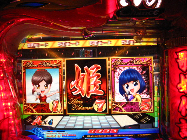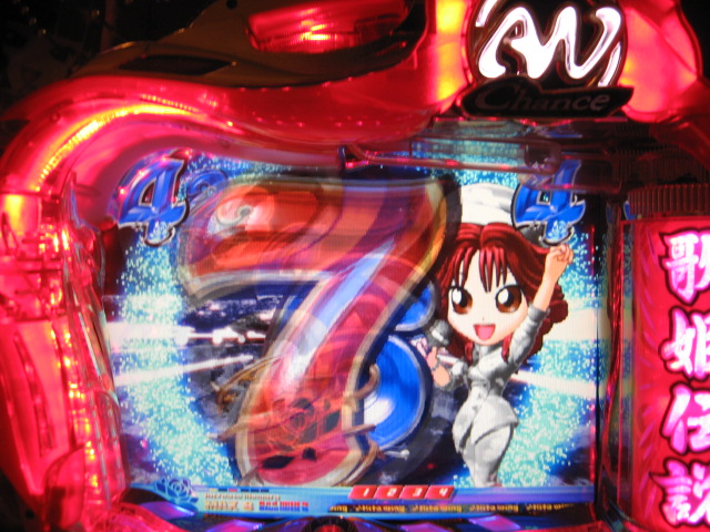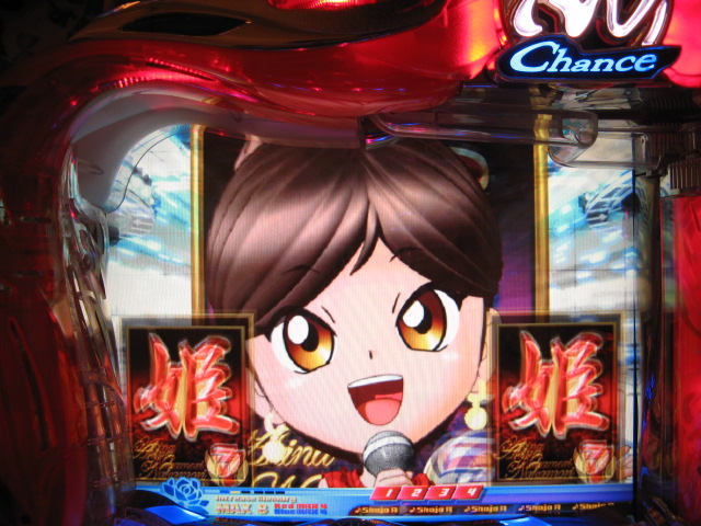 ・・・だったんですけど、MHではなく通勤途中にあるホールです。 もちろん行く前に姫はちゃんといるのか、P-WORLDでチェック! そしたらCXが4台ありました。ヽ(´▽`)/ でも日曜だし・・・空いてるかな・・・ という不安的中。やっぱり空いてませんでした・・・il||li _| ̄|○ il||li 仕方がないので今日も裏稼業へ・・・ 本日6回当たりで300回ぐらい回してある台でした。 しかし・・・回らない・・・最初の0.5K、2回ですよ!( ゜з゜):;*.':; まあ、あちこちストロークを変えてるうちに 1Kで15回ぐらいまでは行きましたが・・・ とりあえずもう1K入れてみると、今度はまあまあ。 でもとくに演出はなし・・・3K投入。また微妙に回らず。 上皿の分が終わったら台変わろう、と思っていたら!!! いきなり背景が夕方に! これってアツいんちゃうんっ!! と思ってたら、確変で当たりました!(´゚艸゚)∴ブッ きのうに続き、3Kで当たり・・・(*゚Д゚) これが4連荘しまして、1箱流したところで凸ゲット! これも確変で3連荘後、 時短抜けの1回転目にまたもや当たりゲット!!! 何回当たったんだか覚えてませんが、凸入れて20回ぐらいです・・・ なななななんと、11連荘とかもありまして・・・ でも、連れに2箱寄付してあげて最後は1箱流したので 12箱交換・・・47K勝ちでしたっ!!! いやでも、最後の時短が終わったときに、姫を打たねば!と見に行ったんです。 そしたらやっぱり空いてない・・・ 去年の夏に姫に出会ってから、 ホールへ行ったのに打ってないなんて初めてです! でも、けっして浮気したわけじゃなく・・・ 空いてなかったからしかたないですよね。 姫を打ってたらきっとこんなに勝ててなかったなんて これっぽっちも思ってませんからっ!!! ・・・しかし、My実機ちゃんはゴキゲンななめでした・・・ ↓↓↓家LIVE報告ですっ!↓↓↓ 2007.04.21 Sat 23:35:49