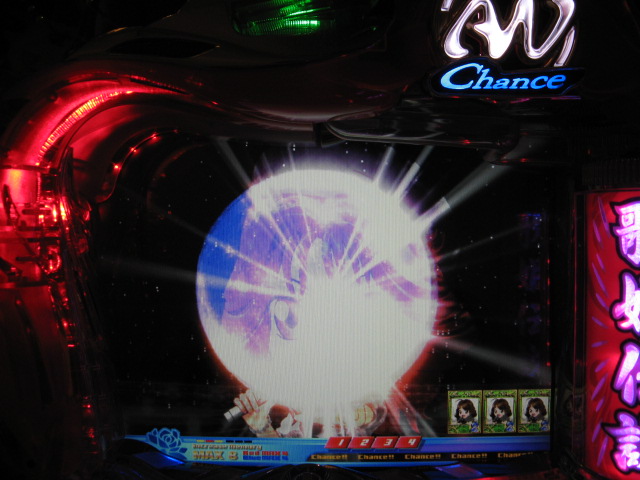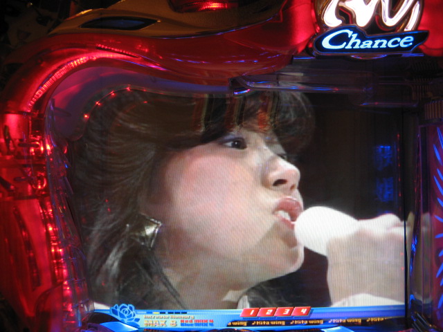 って、どんだけ~ とくに好調っぽくも不調っぽくもなくさくさく進んでいた103回転目 いきなりMAX発動っ! そして暗転っ!! いきなりMAXは通常リーチよりイントロの方がなんかアツいですよね!? しかし・・・暗転はしたものの、そのまま通常回転へ!( ゜з゜):;*.':; そして北菜さんがうひょり・・・ 2007.04.21 Sat 21:18:00