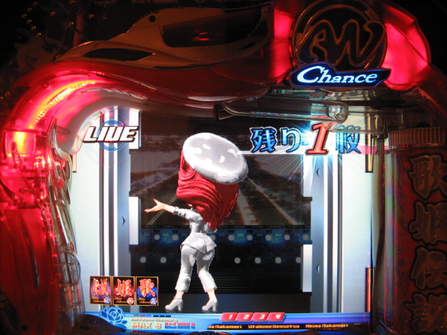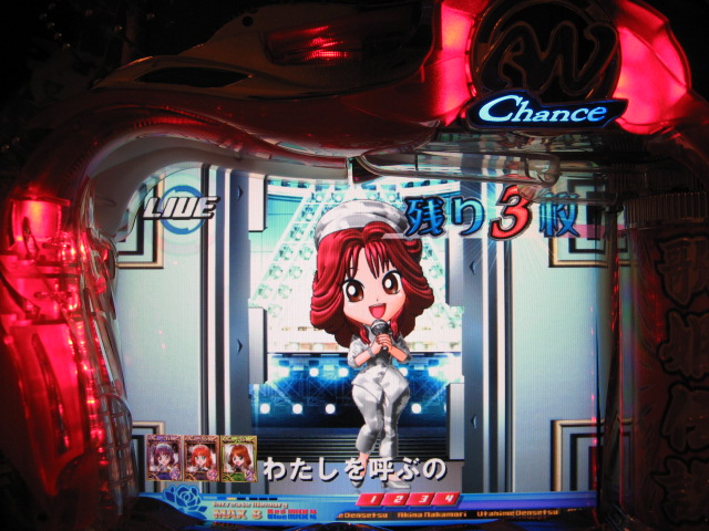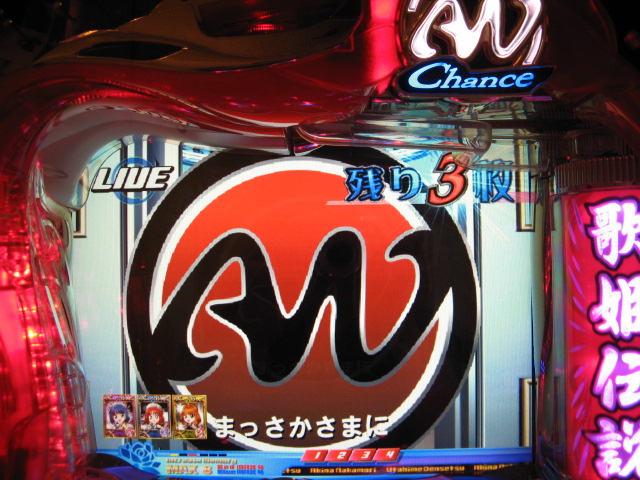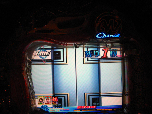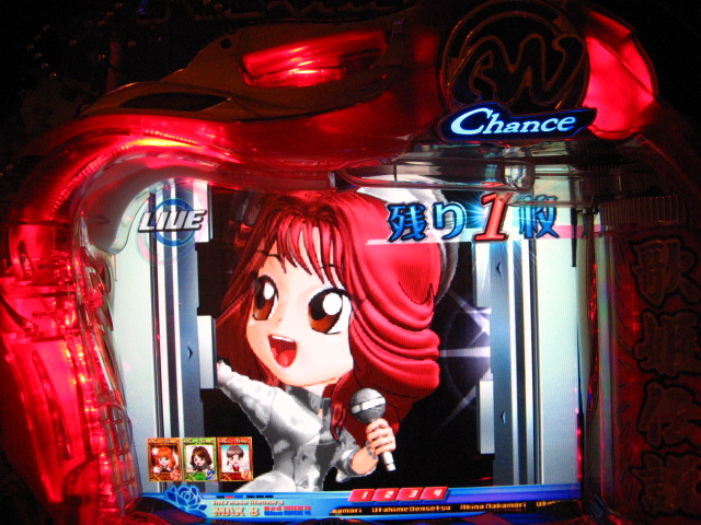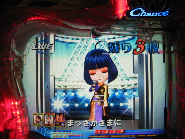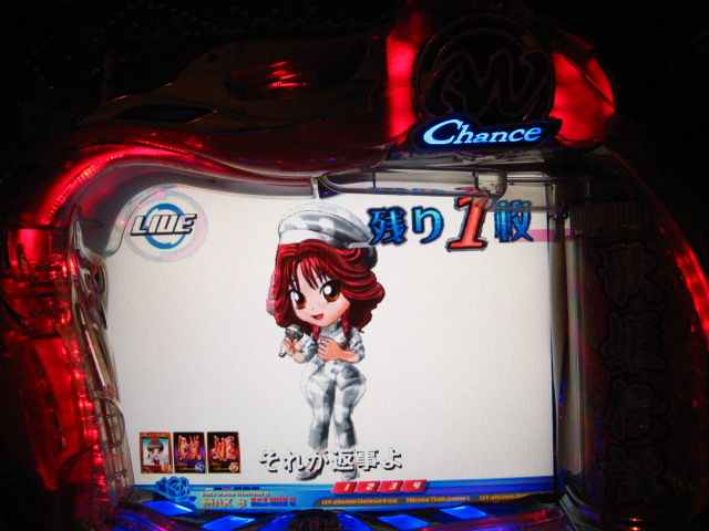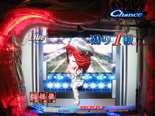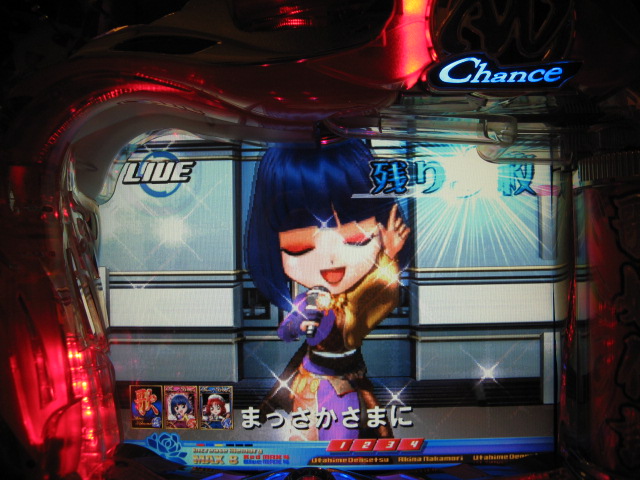 どばーっ (┬┬_┬┬) CXでは戒菜さんが初当たりで確セグをくれましたが 確はその1回のみ・・・ チャンス目で2R引きましたが、60回はまったあとで強制連行・・・ 残り玉が2、3個という最後の保留で擬似連になり なんと久しぶりの青擬似っ!2回目赤スポットでデザ実写 でしたが、やっぱ単・・・(玉をくれた隣のおじさん、ありがとう) 神話の実写も出てくれましたが、ええ、単です・・・ 私がよんらうんどたん地獄にあえいでいる中、 両隣が【5】でLIVE。ヽ(´▽`)/ ま、歌姫様には遊んでいただいたんですが 裏稼業にしぼりとられました・・・3連勝ならず・・・ヽ(;▽;)ノアハハ、、、 ってことで、きのうの家LIVEご報告を・・・ 2007.04.26 Thu 23:54:24