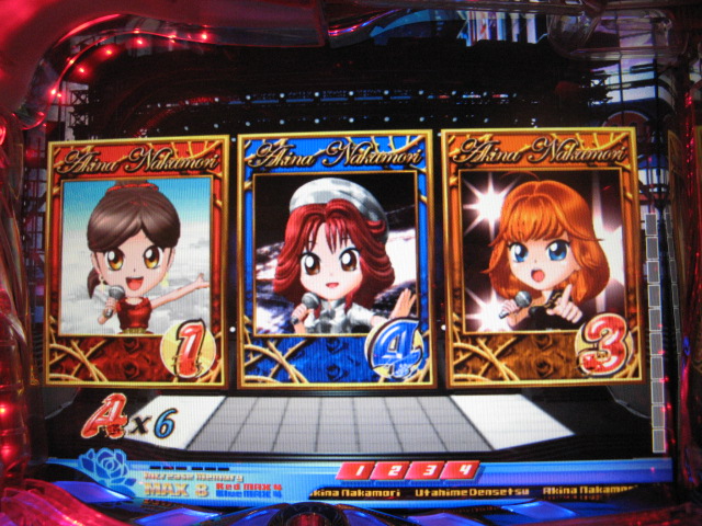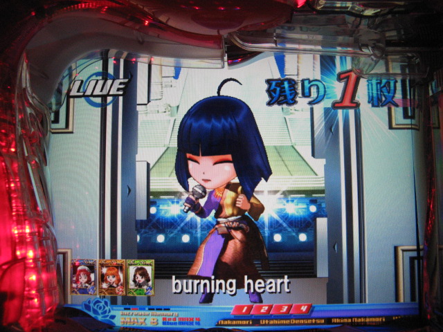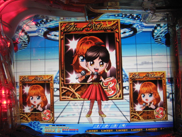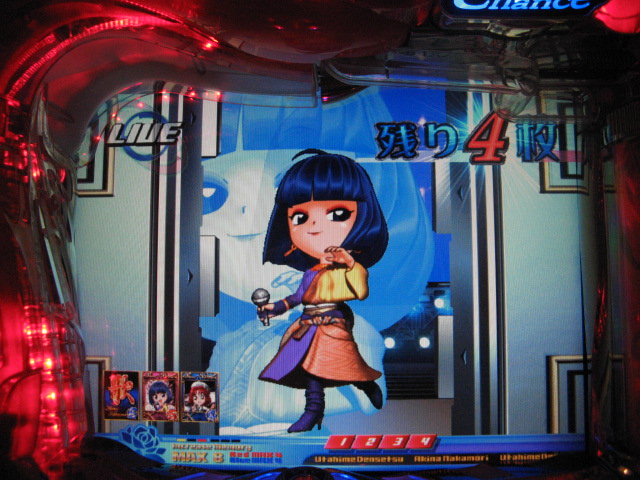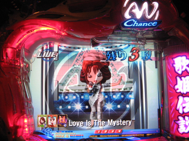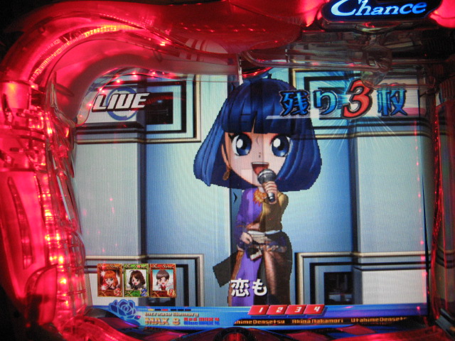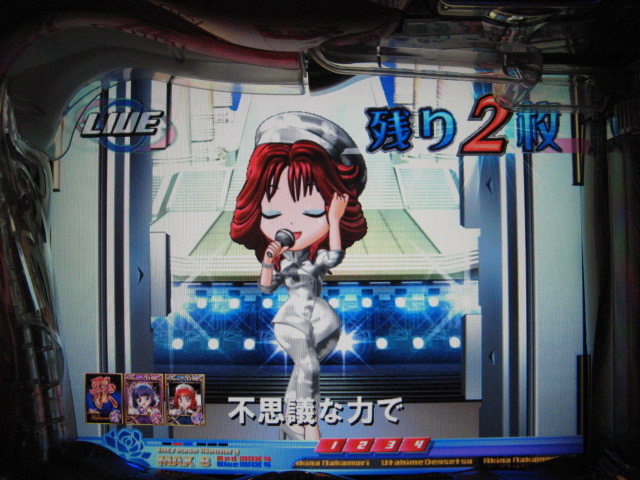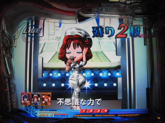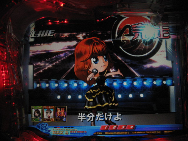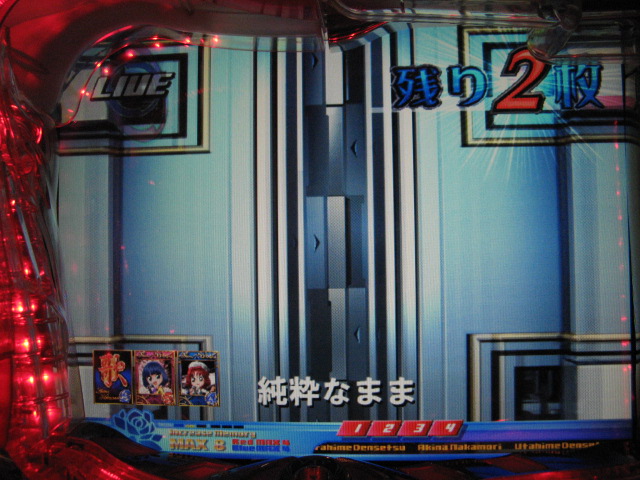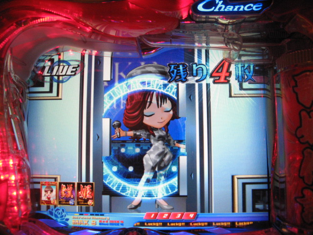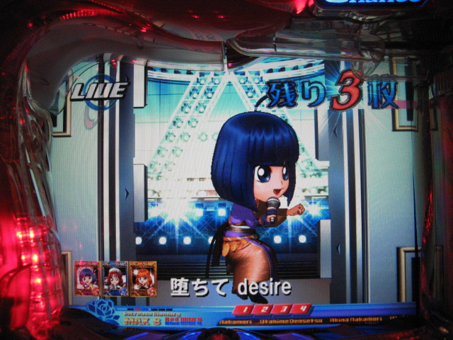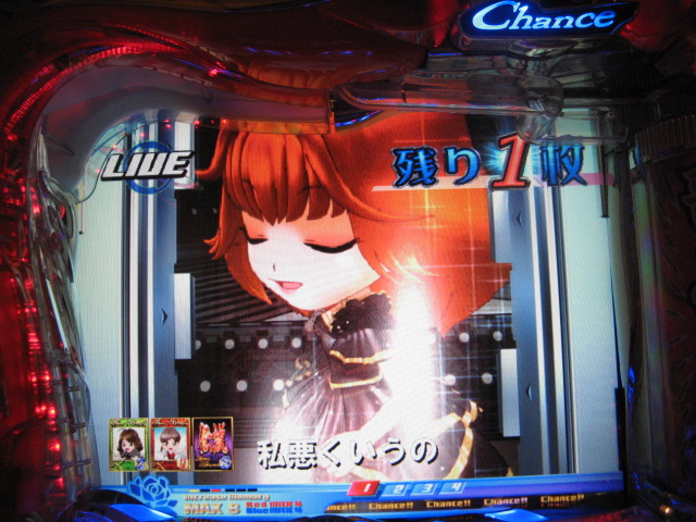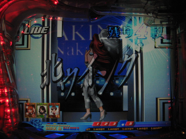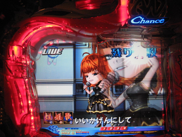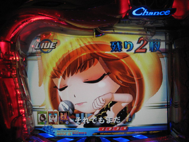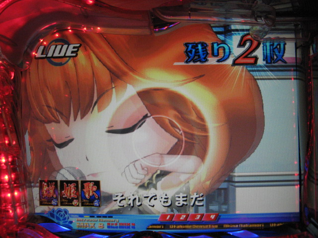 実戦に惨敗したショックで家LIVE終了後力尽きました・・・ ホールでの実戦、7連敗中。 わははははははははは!!!! (メ▼Д▼)y=~~~。o ○プハ~~ きのうの実戦、またもや出だしはよかったんです・・・ 2Kで当たり、4R単でしたが3連荘ぐらいしまして、 でも回らない台だったので隣に移ってすぐまた4R単。 しかし、種無しからデザ菜さん完走でE張り付きっ!!! 確当たりはこれだけだったにもかかわらず、単で引き戻し続け2箱に。 ・・・ええ、一瞬でしたけどね・・・ 別のホールでまたCX打ってたんですが、リングに空き台が出たというので移動。 ちょうど、いきなりMAXのデザイアをハズしたところだったんで・・・ しかし、リングに8Kぐらい投資するも当たらず・・・ なんかおどろおどろしいリーチになって、 「ぎゃーーーーーーー!!!」って絶叫してる顔がカットインして、 ♪く~る きっとくる~ も流れたのにハズレ・・・( ゜з゜):;*.':; どうでもいいけど、たまには髪とかせよ、貞子。 面白くないのでCXに戻ってみると・・・ さっき私が座ってた台、2箱ゲットのLM中。 そして北菜さんがE張り付ける。 ヽ(;▽;)ノアハハ、、、 2007.03.20 Tue 22:12:40
