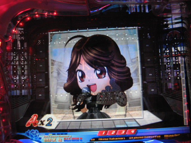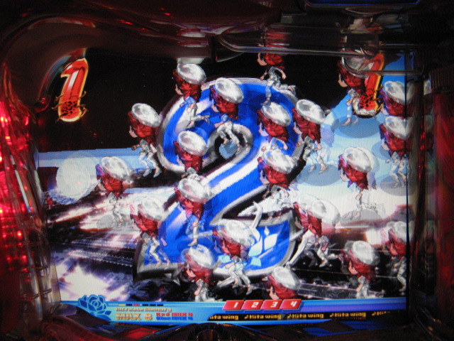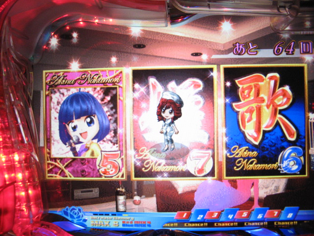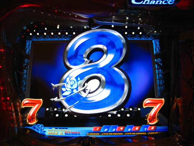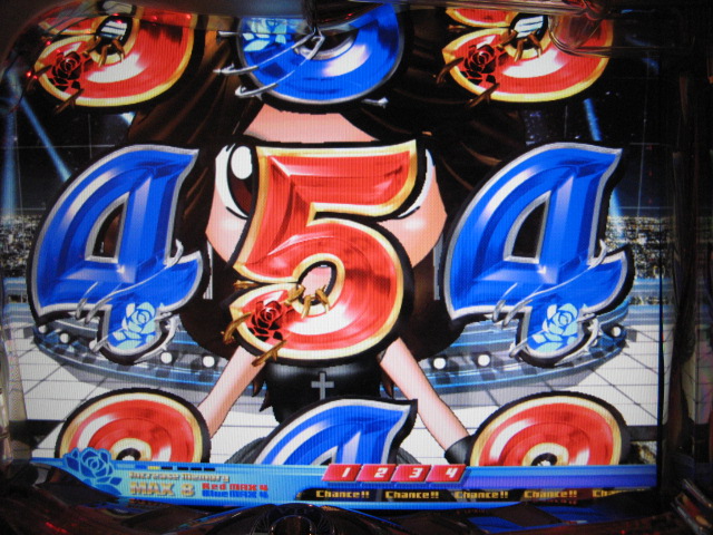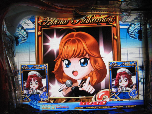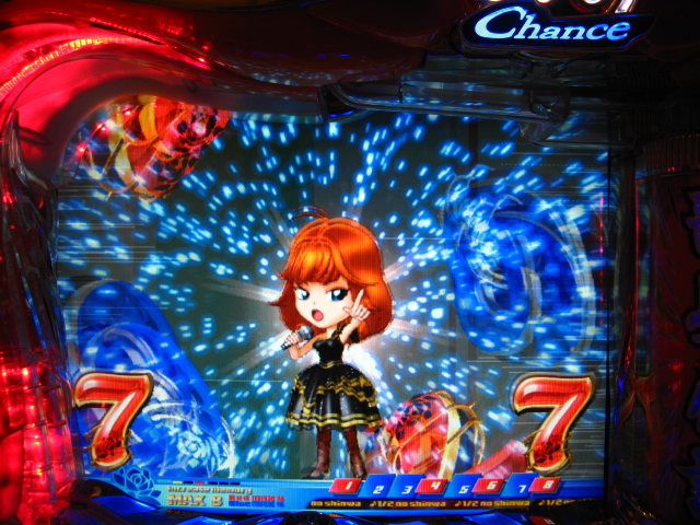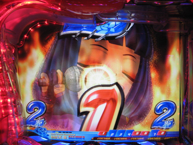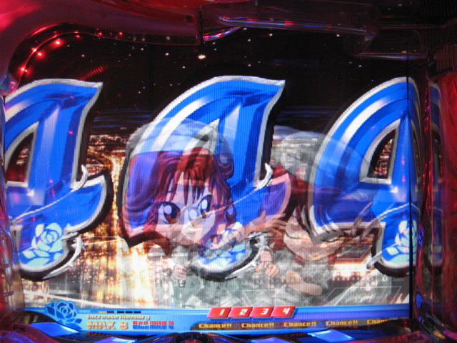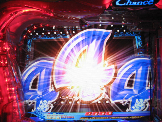 AX8台、CX8台設置の最近MH認定されたホールへ。 直前まで、「CXを打とう!」 と思っていたのに、気づいたらAXのシマへ。 お一人様のみライブ中で4箱積んでました。 角台は両方空いてて、どっちにしようか悩みましたが なぜか端から3台目に着席。・・・回るような回らないような・・・ とりあえず3K打ってみましたがしっくりこないので やっぱし角台に場所移動。 本日の回転数は0、当たりは昨日7、おととい0・・・ そして9回転目。 2007.02.16 Fri 23:39:52