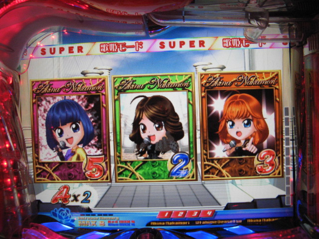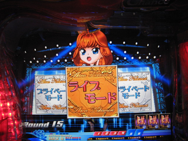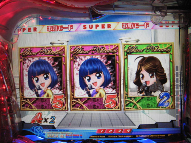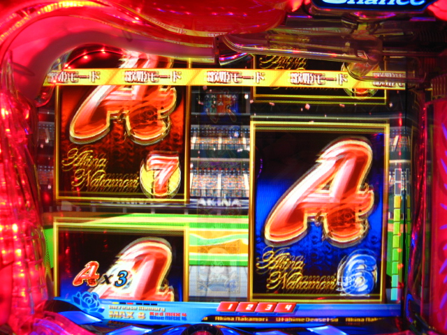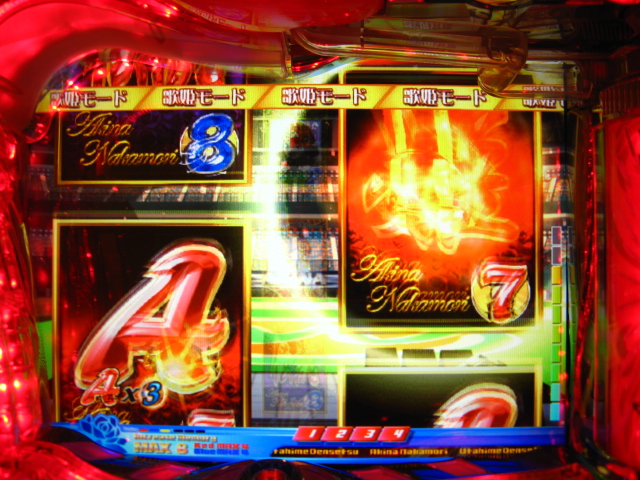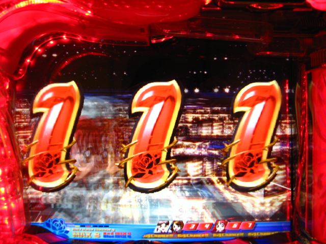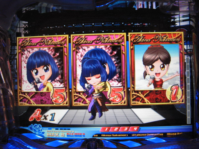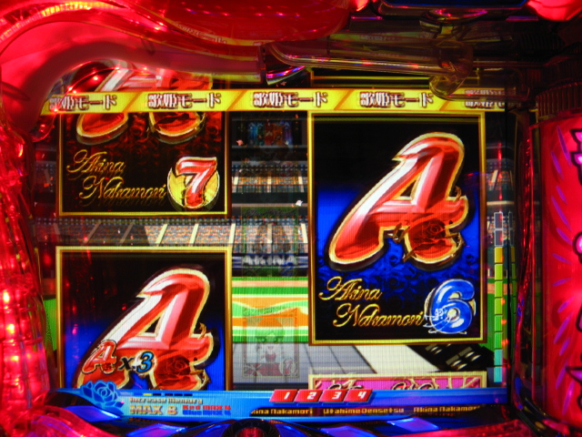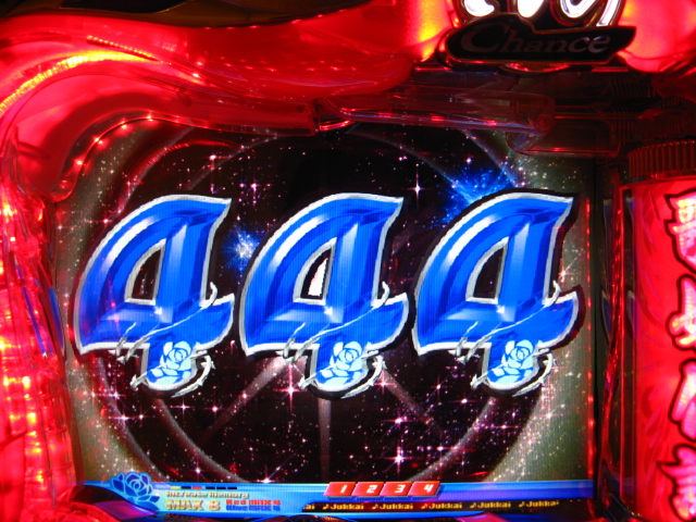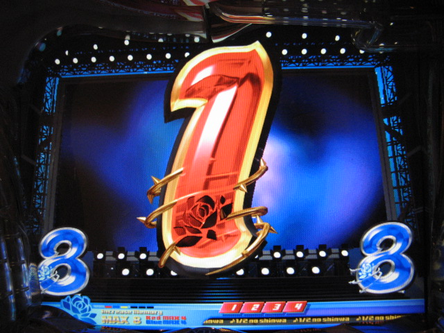 AX8台、CX8台設置の最近MH認定されたホールへ。 直前まで、「CXを打とう!」 と思っていたのに、気づいたらAXのシマへ。 お一人様のみライブ中で4箱積んでました。 角台は両方空いてて、どっちにしようか悩みましたが なぜか端から3台目に着席。・・・回るような回らないような・・・ とりあえず3K打ってみましたがしっくりこないので やっぱし角台に場所移動。 本日の回転数は0、当たりは昨日7、おととい0・・・ そして9回転目。 2007.02.16 Fri 23:39:52