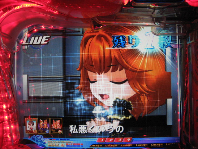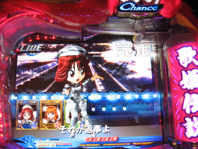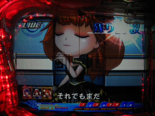 うちのMy実機ちゃん・・・土日の連休でだらけすぎたのか、 ちっともまったく全然やる気なし・・・(;゚Д゚) イントロすらろくに来ないまま、ガセチャンス目の連打でガセ姫モードへ。 このガセ姫モード中、やたら消灯するんです。 ま、消灯はちっとも期待できませんが、緑玉とか1枚落ちて十戒とか、 ついつい微妙に期待してしまう演出へ・・・ もちろんすべてハズレましたが。 すると、同じく消灯の2枚落ち、暗転っ!!! こ、これは少しは期待していいのでは・・・(゚Д゚;≡゚Д゚;) と思ったら、 チャンス目演出・・・もちろんガセ。 Σヽ(●゚д゚●) ナンデヤネン! 2007.02.18 Sun 17:52:04
