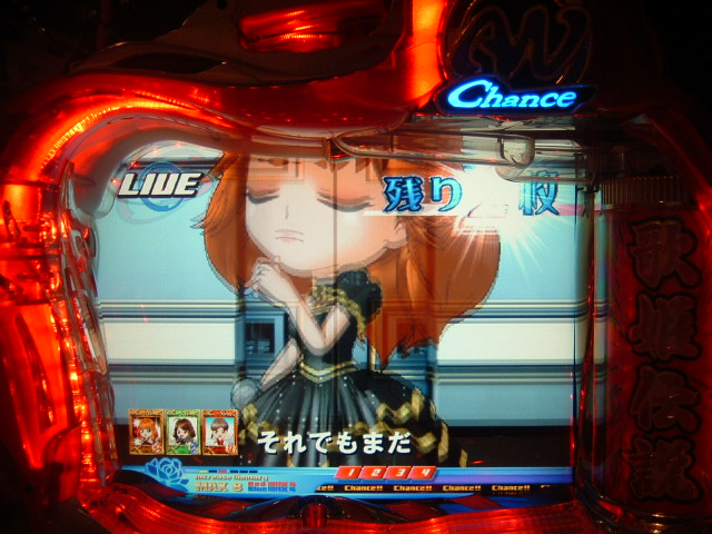 まずはっ! 先日の日記 に書きました、C姫さま対決の結果です! ええ、 今回の対決では、投資額が10Kまで! というルールがありました! 先日も書きましたけど、とにかく回らなくて でもC姫さまは満席で移動もできず… 一気に10Kつかわなくて分割使用(?)もオッケーなのですが、 もう気分はどっぷりC姫さまですから、 ほかの機種を打って空きまち…ということもできず。 どんどんどんどん軍資金がへっていきます… たまに プッシュボタンがぴかりとも光りません。(○´゚ω゚`):;*.':;ブッ っていうかですね、コレという演出もほとんどなく… たま~~~にイントロがでても もちろん歌ってくれません、ガセの山が築かれていきます… 回らないくせに、ばくだんはことごとく自力…(*´Д`)=з ようやく!! ようやくようやく歌ってくれたのは 北菜さんでしたぁぁぁ!! ヽ(´▽`)/ ヽ(´▽`)/ ヽ(´▽`)/ …以上。 プロペラ機でいいから来てほしかった…(謎) で!!!ついにぃぃぃぃぃ!!! 軍資金が残り0.5Kにぃぃぃぃ!!! (((( ;゜д゜)))アワワワワ やばいです!やばすぎですっっ!!! と、おもっていましたら!!!! ヤタ━━━━━━ヽ(゚`∀´゚)ノウヒョ ━━━━━━!!! ここからですっ! 最後の0.5Kから、怒涛の巻き返し!! 完走劇場の始まりですっっっ!!! (;゚皿゚)ふんがー 2008.03.23 Sun 23:32:37